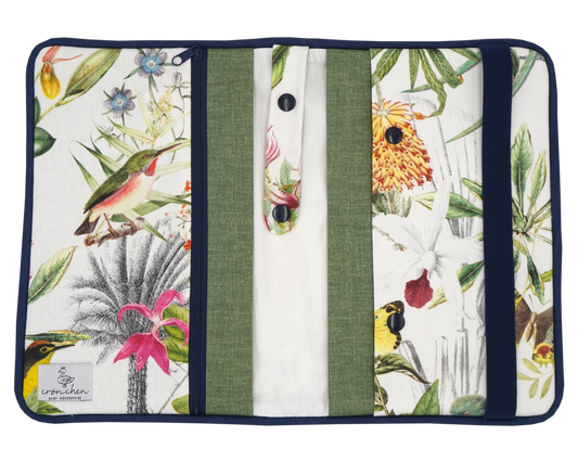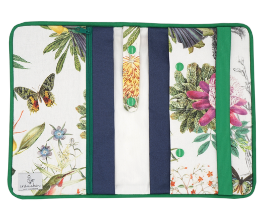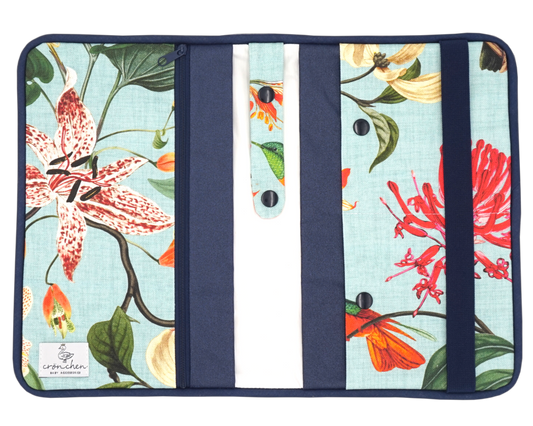 Wickeltasche Blumen grün & dunkelblau