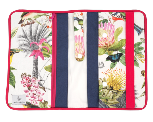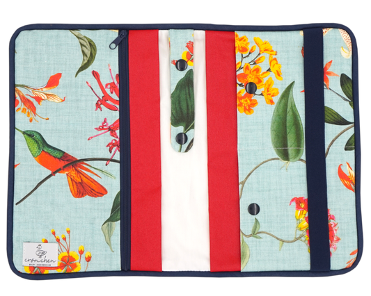 Wickeltasche türkise Blumen rot & dunkelblau