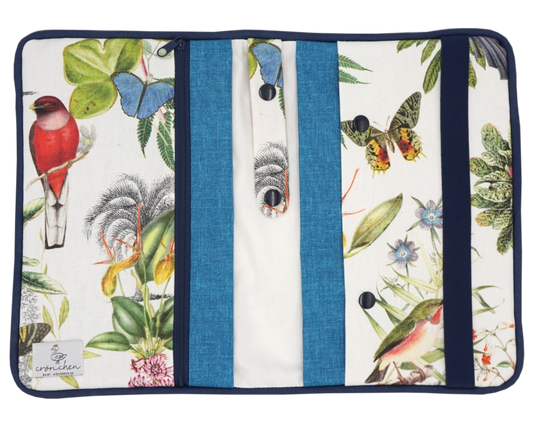 Wickeltasche Blumen dunkelblau & grün