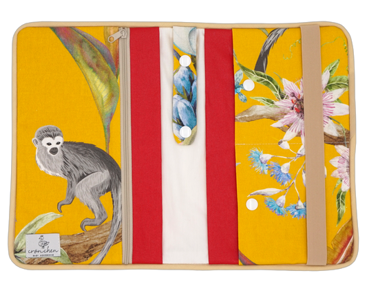 Wickeltasche gelbe Affen rot & beige